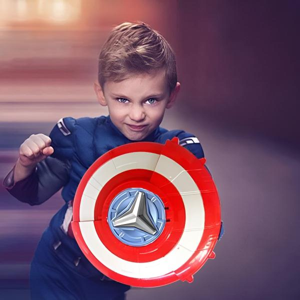 Inšpirujte sa, aby ste sa stali slávnym superhrdinom so štítom, ktorý nielen bráni, ale aj strieľa mäkké penové šípky pre vzrušujúcu akčnú hru.