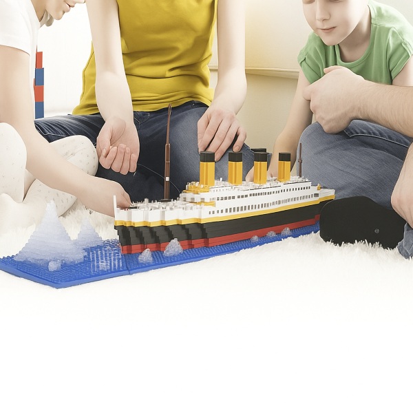 Zostavte legendárny Titanic z 1860 mikro stavebných kociek. Každá paluba, stožiar a trup sú navrhnuté pre realistický a detailný model. Kocky sú vyrobené z odolného, netoxického plastu ABS a sú pripravené vydržať dlhodobé používanie. Precízne spracovanie zaručuje pevný, detailný a vizuálne pôsobivý model Titanicu – ideálny pre modelárov a fanúšikov Titanicu hľadajúcich výzvu.